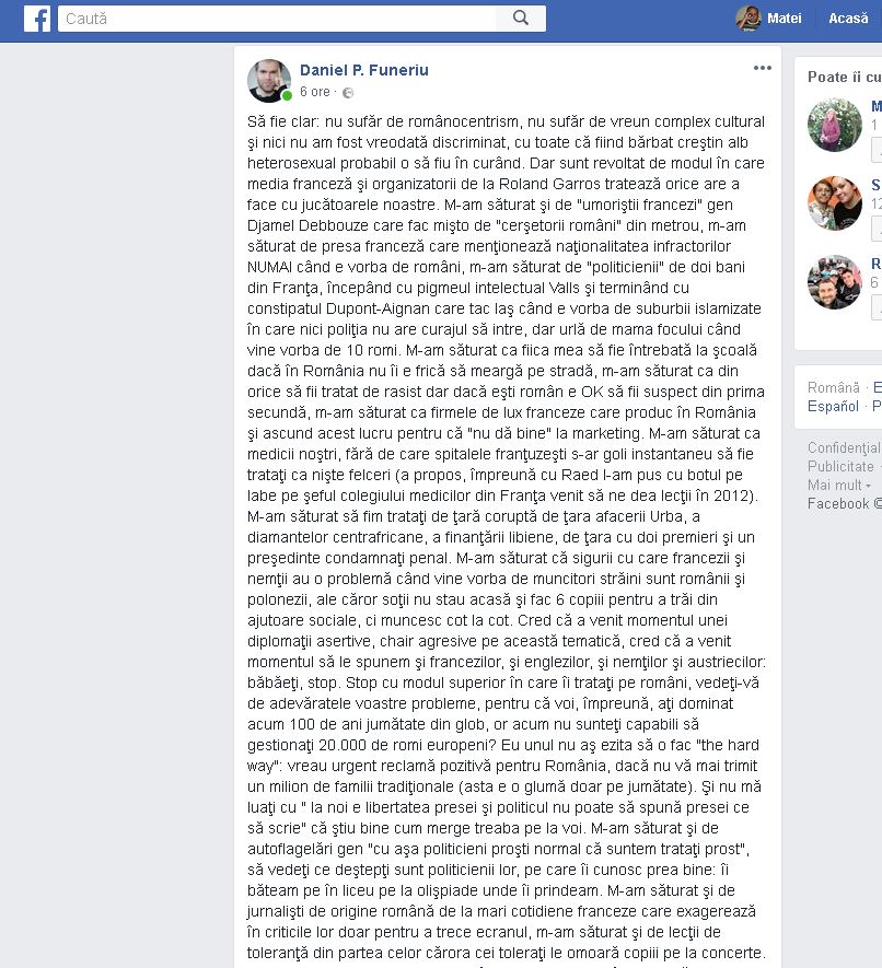 Un text pe FaceBook care este greu de citit. Nu mă îndoiesc de calitatea ideilor care se vor transmise, dar încercați să-l citiți și dvs. Dacă nu vă fug ochii printre rânduri înseamnă că mă-nșel…