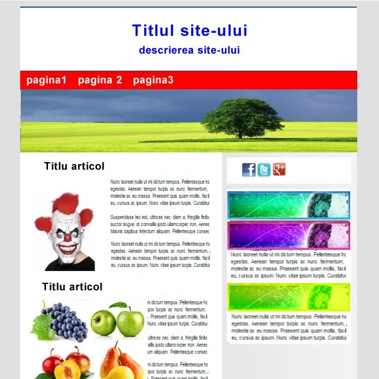 Mai jos puteţi avea un aranjament al paginilor dvs. Desigur că aspectul, designul fiecăreia poate fi diferit de la un template la altul. Bineînţeles, în cazul în care în viitor optaţi pentru altfel de aspect şi/sau funcţionalitate.