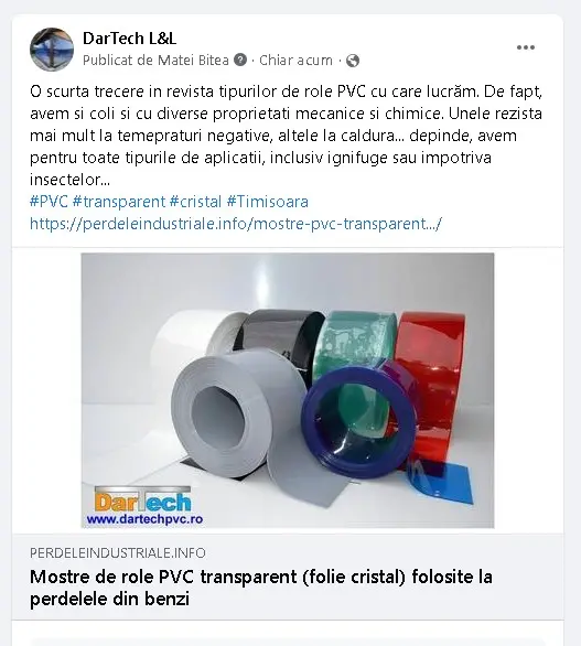Postări pentru firmă manufacturiweră de folii PVC transparent, perdele pentru camere frigorifice, închideri de terase şi balcoane.