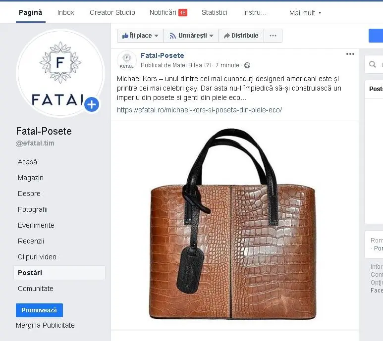 Magazin de poşete şi marochinărie, promovarea produselor pe Facebook prin fotografii şi articole de blog.