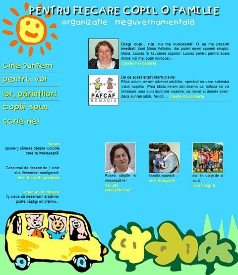Site-ul avea un web design aerisit, simplu și cu estetică potrivită copiilor, pretinde cunoștințe sumare despre fișiere și web. Problema se ridică la spațiul pe server. Copiii ar vrea să fie nelimitat.