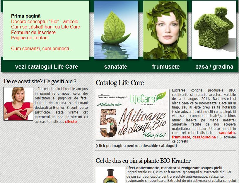 Site cu conținut mare de fotografii scanate și prelucrate de pe ambalaje. Sau downloadate de pe site-ul Life Care. Oricum, a fost un web design care cuprindea o interfață scrisă în html și un wordpress în care posesorul își introducea produsele și descrierile acestora.